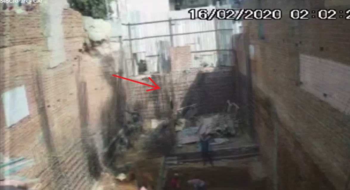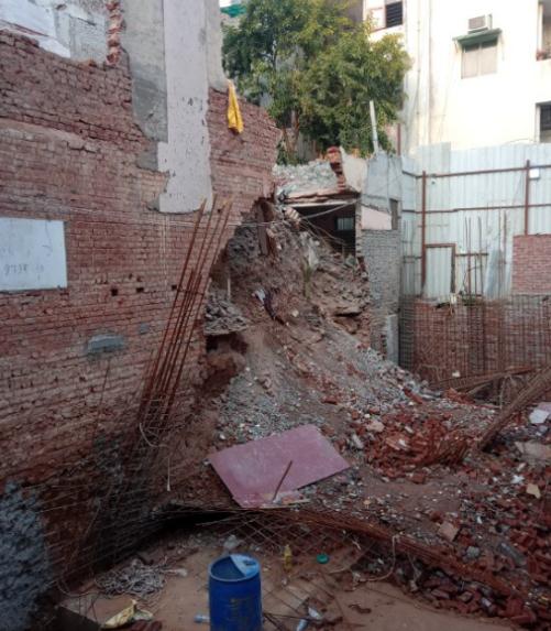 On 16 Feb 20 when no construction activity was taking place at E845 the wall of E844 which was being demolished fell into the plot of E845 along with accumulated debris (Malwa).