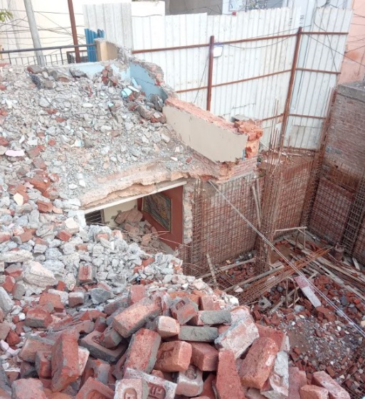 | 3 | ![]() | During dismantling the contactor had accumulated all the debris “malwa” on the slab which created the stress on the outer wall. Slab was dismantled without providing sufficient support to the wall. |